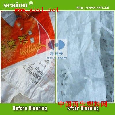 废旧蛇皮袋油墨脱除剂 海离子—H301 编织袋清洗剂[常温型]是我司最新研究成果,解决多项技术瓶颈,真正做到不加温,彻底清除各种编织袋表面油墨,成本仅为加温方法的燃料成本,是替代传统加温清洗的最佳选择。 适用范围: 各种编织袋、集装袋(吨袋)、吨包袋、子母袋、太空袋、蛇皮袋表面字迹,图案,商标等油墨脱除。对复膜袋无效。在无需加温的条件下,能快速有效地洗净表面油墨及环境污染的各种脏物,洗后切粒颜色较白,有光泽,附加值高,是现行从事编织袋回收处理厂家增加利润的理想用品。