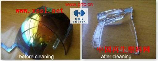 海离子317-PC眼镜片脱色脱膜剂 海离子317是专门用于脱除PC眼镜片上的各种色膜、耐磨膜。洗后PC清亮,回收率高。 不损伤基材、清洗前后分子量不变。 无腐蚀,洗后PC明亮,不发黄。 操作简单,一次性完成脱色脱膜。 清洁生产,无毒、无害、不污染环境。 适应范围: 各种中分子、中高分子PC眼镜片,板材的脱色膜及硬膜的脱除。 使用方法: 先将废料破碎,倒入按比例兑水的海离子317清洗液中,加热搅拌约3小时,脱净过清水即可。 注意事项:1.本产品是海离子制品,请存放于阴凉避光处 2. 不慎溅入眼睛,请用大量清水冲洗 3. 长期作业请带胶手套 4. 废水需经处理方能排放