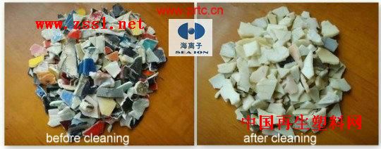 汪女士13602474916 废旧塑料回收利用能给企业带来巨大利润,且资源再生利用也是现在的大势所趋,废旧塑料表面之前喷有各种漆面,胶类等杂质,这些油漆、油墨如果不清洗或清洗不彻底而直接再利用,造出粒子较黑,卖不出高价,且只能生产性能较低的产品。 因此就需要进行废旧塑料再生清洗,传统方法使用酸泡,虽然能够快速溶解胶漆,但是毒性大, 基材有溶于溶剂及溶解的漆胶有侵入基材的倾向 且处理成本高昂 ,废液处理复杂,废水处理成本高。 海离子脱漆剂是新型的无毒无害的安全快速有效的脱漆剂,适应面广,对绝大多数ABS的漆面及不干胶漆均有特效,洗后基材受到保护,不会二次着色,洗后显示基材原色且废液可循环使用,大幅降低回收处理成本。
