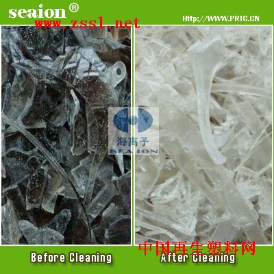海离子废旧塑料脱漆/脱胶/脱墨/脱镀/脱膜清洗剂(油墨油漆不干胶脱除剂)---专门为 (PVC/PS/PE/PET/ABS/PP/PMMA)表面油墨油漆不干胶回收处理而设计,能快速彻底清除基材表面的UV胶,金属反射层、染料层、印刷油墨、烤漆、喷漆等;同时适用于个别塑料的分离使用。本品无毒无味、不燃烧,工艺过程全面彻底去除漆面和金属镀层,不损害片基材质特性,无噪音、无废气、无害,安全环保,是塑料回收处理企业的必备用品。工艺过程只需1.5-2小时,全面彻底清除印刷油墨、烤漆、喷漆、不干胶标贴;金属退镀(表面退金、银、铜、钛、镍、铬、锡、铝金属镀层的专业用品,节省资金成本和人力物力,每吨塑料只要60-500元清洗剂费用,比传统方法节省50-80%。有效缩短处理时间,3-8名工人能日处理3~5吨塑料,经济效益明显。