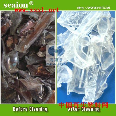 海离子废旧塑料脱漆/脱胶/脱墨/脱镀/脱膜清洗剂(废塑料油墨油漆烤漆喷漆不干胶油污燃料层涂层脱除剂)---专门为 (PVC/PS/PE/PET/ABS/PP/PMMA)表面油墨油漆不干胶回收处理而设计,能快速彻底清除基材表面的UV胶,金属反射层、染料层、印刷油墨、烤漆、喷漆等;同时适用于个别塑料的分离使用。本品无毒无味、不燃烧,工艺过程全面彻底去除漆面和金属镀层,不损害片基材质特性,无噪音、无废气、无害,安全环保,是塑料回收处理企业的必备用品。工艺过程只需1.5-2小时,全面彻底清除印刷油墨、烤漆、喷漆、不干胶标贴;金属退镀(表面退金、银、铜、钛、镍、铬、锡、铝金属镀层的专业用品,节省资金成本和人力物力,每吨塑料只要60-500元清洗剂费用,比传统方法节省50-80%。有效缩短处理时间,3-8名工人能日处理3~5吨塑料,经济效益明显。