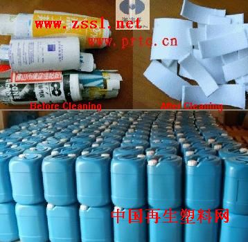 PE玻璃胶瓶脱墨脱胶褪漆清洗剂 产品特性: 废塑料表面油漆油墨不干胶脱除剂(脱漆脱色脱胶剂)海离子304能全面清除PE玻璃胶筒(胶瓶)上各种油墨、剩余黑胶(对管口内残留胶质均有效)及其表面污染物,不伤害基材,具有超强的除墨效果,操作安全方便,无毒无害、成本低等优点。洗后不影响PE白度,回收率高。 产品优势: ● 无溶剂成份,无人身和生产的安全性 ● 洗后材质不变黄,基材显示原色 ● 工艺过程简单有效,一次完成脱墨脱胶,成本低 ● 无味、无毒、无挥发,不燃烧,清洁生产