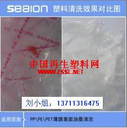供应:PP/PE/PET薄膜常温脱墨脱胶剂 产品特性: 塑料薄膜表面油漆油墨不干胶脱除剂(褪漆去胶剂)海离子303是针对国内外PP/PE表面的油墨脱除而研制的。在无需加温的条件下,能快速有效地洗净表面及环境污染的各种脏物,洗后切粒颜色较白,附加值高,是现行从PP/PE薄膜回收处理厂家增加利润的理想用品。 产品优势: ● 不含磷及亚硝酸盐等有害物质 ● 无需加温,节约能耗,降底加工成本 ● 清洗速度快,一般为0.5~1小时,有利于大批量生产 ● 成本更低,处理每吨的药水仅需 150元左右 ● 工艺简单,对整袋或破碎清洗工艺均通用 ● 设备投入少,对新开回收处理厂更加有利 ● 洗净力大,清净度高,能大副提高产品的附加值 ● 无泡及无害设计,废水排放不污染环境