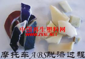 工艺流程:破碎->加温搅拌->漂洗 废旧ABS脱漆剂适应范围:汽车保险杠脱漆、摩托车电力车壳脱漆处理、商务机器及家电外壳游戏机壳表面脱漆处理、装饰板、玩具、包装用品,鞋跟等广泛范围ABS的表面脱漆,脱胶。 废旧ABS脱漆剂其它名称;ABS脱漆剂,塑料表面脱漆剂,摩托车壳脱漆剂,电动车壳脱漆剂,电瓶壳脱漆处理剂